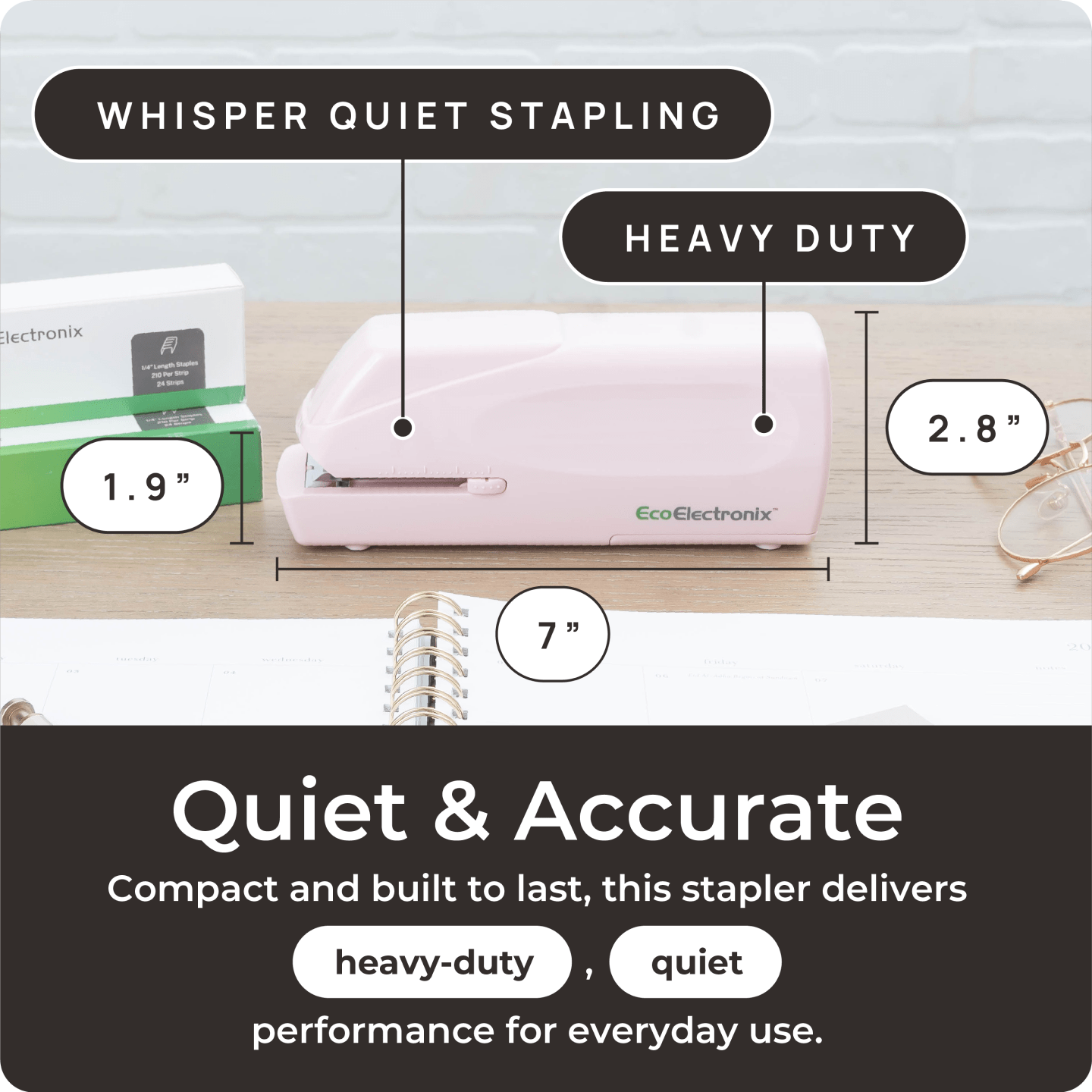 - EXTRA QUIET ELECTRIC STAPLER: Disruption free with whisper quiet stapling